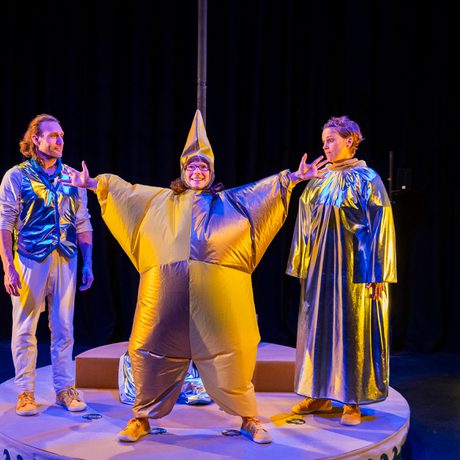 Gaggle is a theatre performance featuring physical comedy, circus and live music. It is made for audiences of young people with complex additional support needs (ASN), and their families.