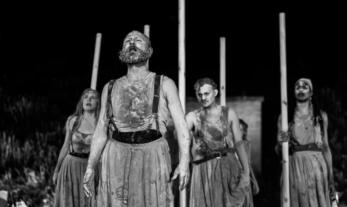 A tightknit ensemble of actors performs a dark and visceral manifestation of the work’s essence and underlaying themes.